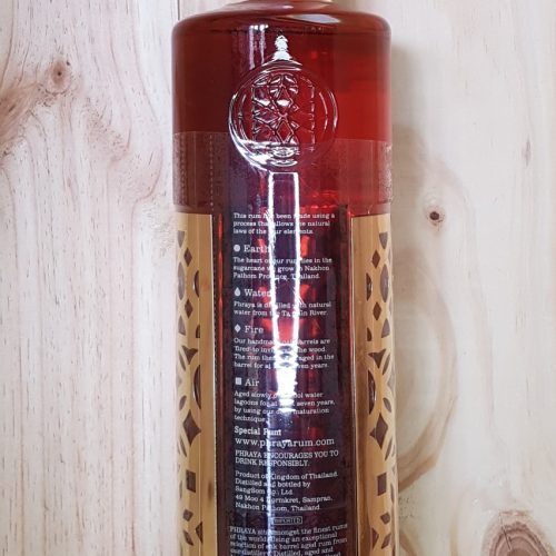 –Elaboration : Assemblage de rhums de 7 à 12 ans en fûts de Bourbon, distillés dans des alambics à colonne.
